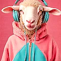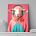 Ovca sa tirkiznim slušalicama i duksericom u kombinaciji roze i tirkizne boje. Duhovito i kul, odlično za muzičke studije, kafe-barove i hip enterijere.